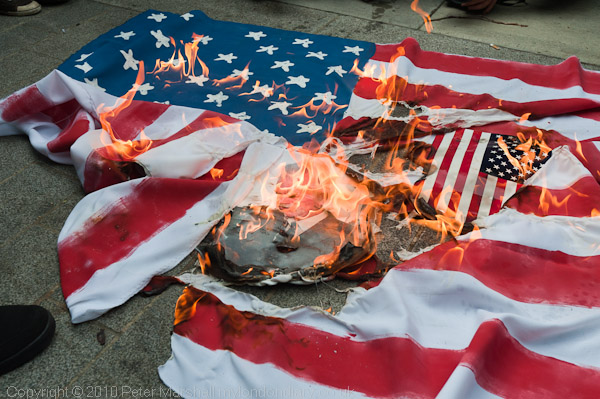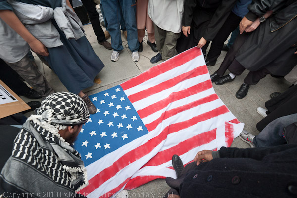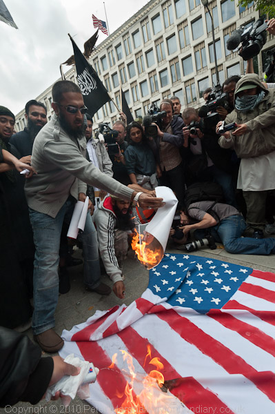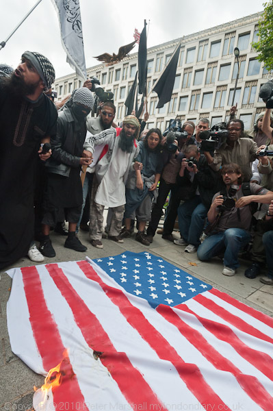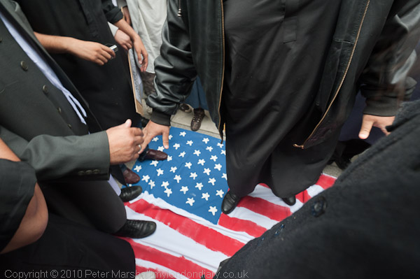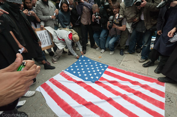 Soon someone produced a large photograph of Pastor Terry Jones and set fire to that too
