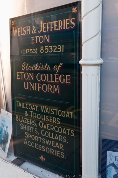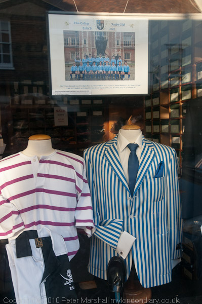 ![]() Eton High St has rather a lot of tailors ![]() ![]() ![]() Students still appear to need waistcoats, watch chains and top hats, though do they really still wear silly caps? Probably. |