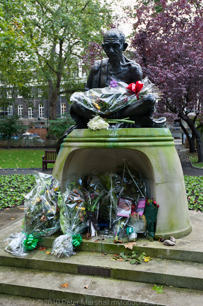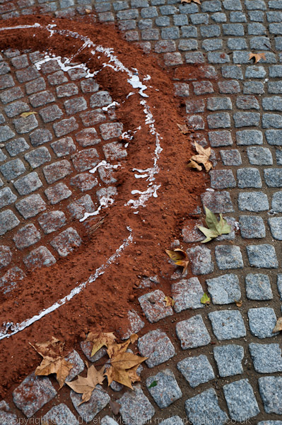 On the right is an artwork made earlier in the day in Tavistock Square by pouring molten metal into sand