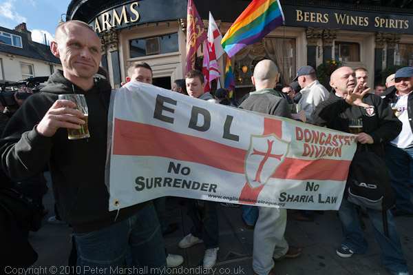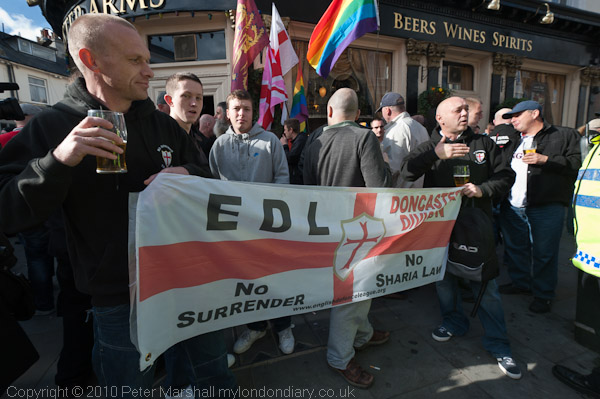 ![]() Rabbi Nachum Shifren talks with EDL members outside the pub in Gloucester Rd ![]() ![]() ![]() ![]() ![]() ![]() |