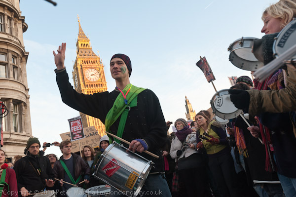 There was a carnival atmosphere with Rhythms of Resistance playing at the top of Parliament St