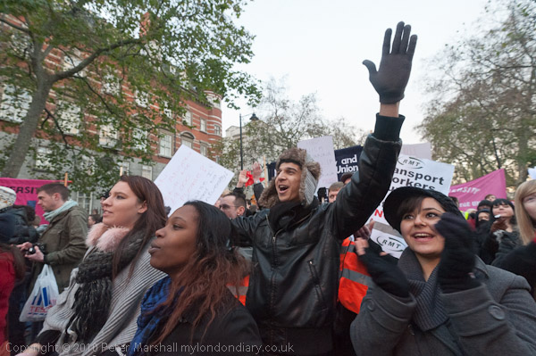 The police were still letting people walk up and down Whitehall and along to the NUS official protest on the Embankment