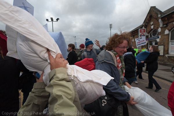 Pillow Fight Against Solum at WalthamstowWalthamstow Central Station Car Park, London. Sat 15 Jan 2011 |