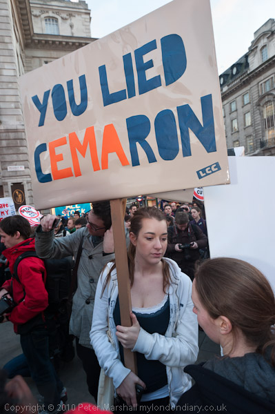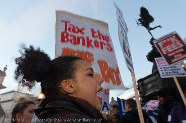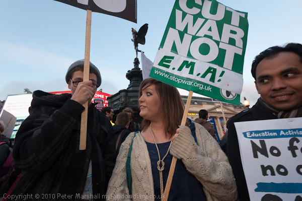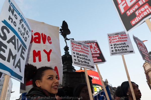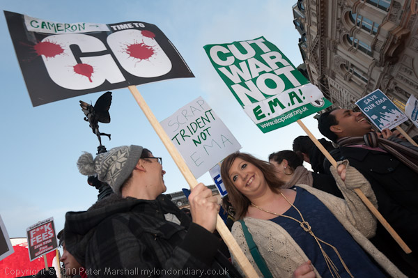 Piccadilly Circus to Parliament Square, London. Wed 19 Jan 2011