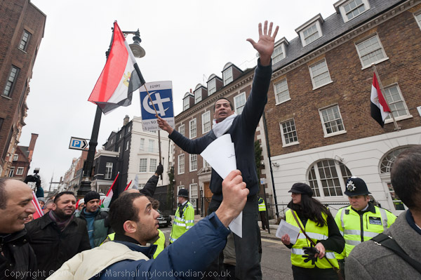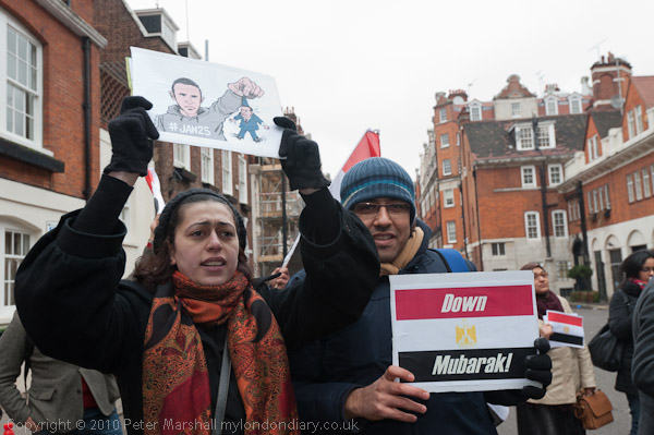 Egyptian Embassy, South St, London. Sat 29 Jan 2011