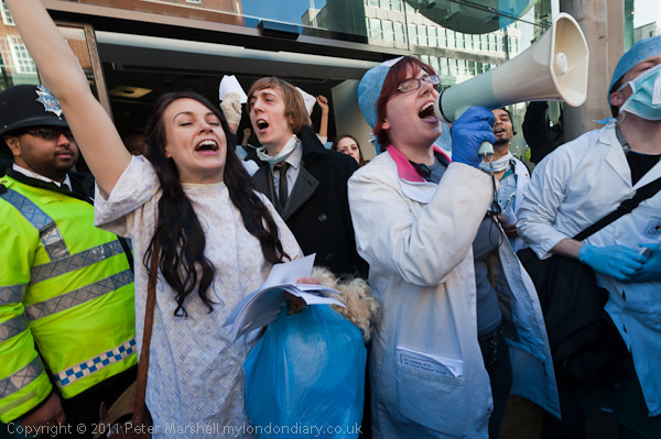 Eventually the doors were opened and the jubiliant protesters came out onto the pavement
