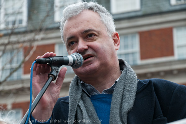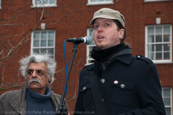 Tariq Ali listening and Donnacha Delong (NUJ) speaking