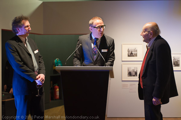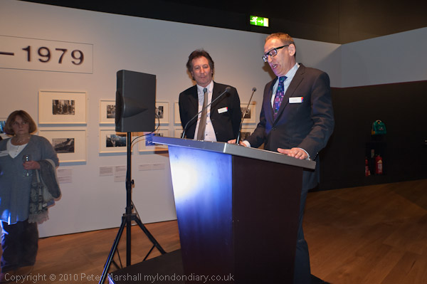 Photographers Barry Lewis and Sally Fear look on as Museum Director Jack Lohman introduces the show