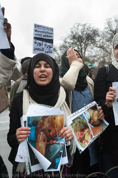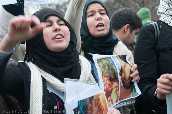 which is a few metres above the pavement level, so the were looking over the Hizb ut-Tahriri demonstrators towards the embassy