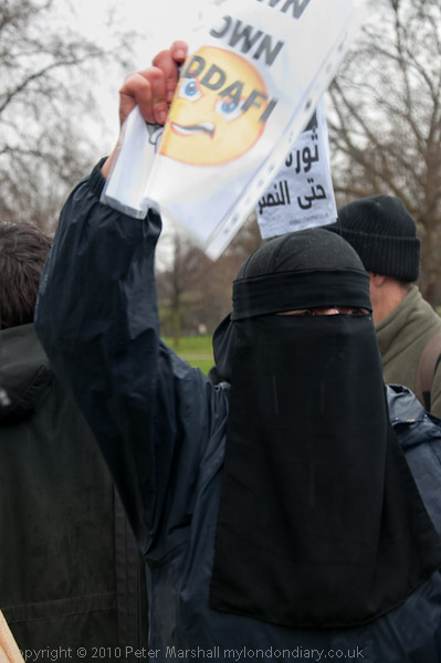 The Libyan supporters arrived a little late to find the pavement occupied, so decided to protest from inside Hyde Park