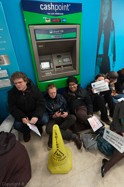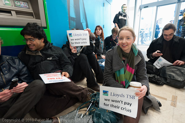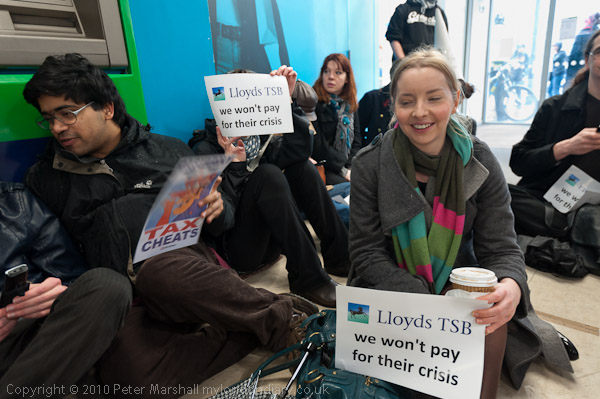Many of those taking part held up slogans; the most popular was 'Lloyds TSB we won't pay for their crisis'