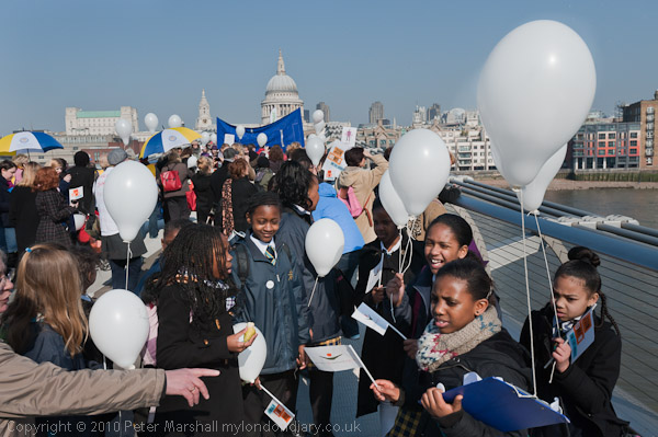 Although the TUC had advised people that there were no official 'feeder marches' to join their main march and that people should go directly to the Embankment, several feeders had been organised by union branches and others, including a 'South London feeder march' from Kennington Park organised by local unions and SOS, Southwark's Save Our Services campaign.