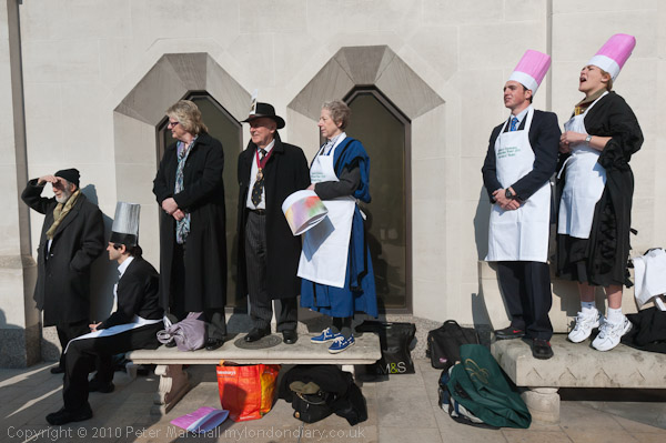 Theatre often has a serious message, and this intervention which included a nicely produced 4 side A4 publication, Worker's Militia (complete with the logo and a message of support supposedly from the Police Federation along with other activist groups such as UK Uncut) as well as the 'Battle of Britain' web site, was aimed at pointing out the spinelessness of the official TUC response to the cuts. To put it simply, the message is that we really should be up in arms about the government's actions.