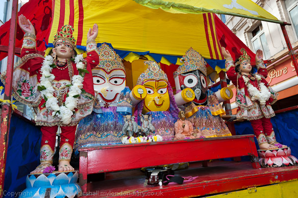 The figures of Krishna in the form of Jagannatha, his half-sister Subhadra (Subudra), and Balarama (Baladeva ) her brother.