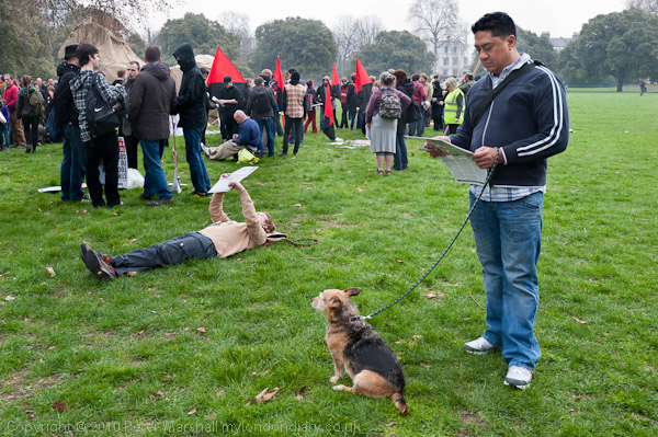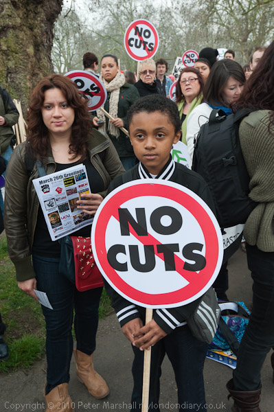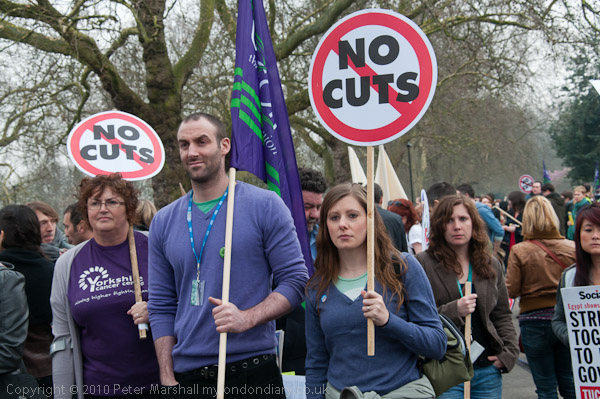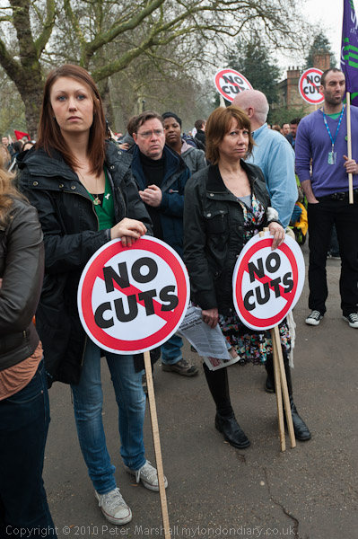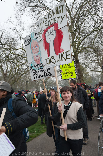 Some of the more provocative placards including 'Does My Society Look Big in This?' and 'Con Dem Protects Pricks'