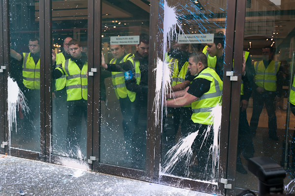 As the Black Bloc moved away I took a different route and went to get the worst of the paint off my clothes and cameras