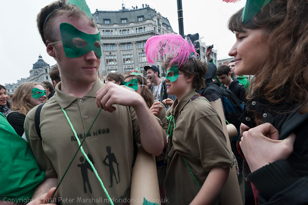 Some of the protesters were dressed to call for a 'Robin Hood' tax