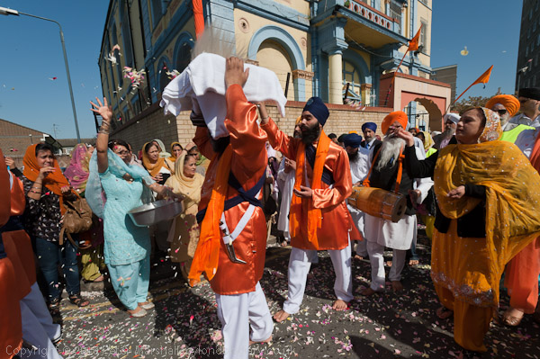 Sikhs around the world celebrate Vaisakhi on the 14th April, but events marking it are held throughout the month in various towns and cities. The celebrations in many places include a religious procession (Vaisakhi Nagar Kirtan) through the town.