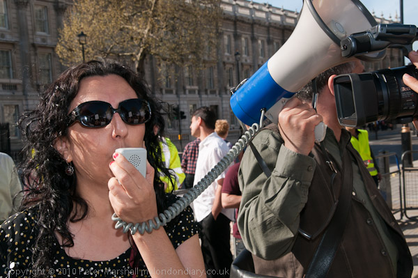 Next door Brian Haw's Peace Campaign was still protesting, almost ten years after he started in June 2001, and his display seemed to have been smartened up a little for tomorrow's event. Although Brian is still in hospital in Germany, his colleague Barbara Tucker was there, telling inquiring members of the press that tomorrow was just another ordinary day so far as their protest was concerned.