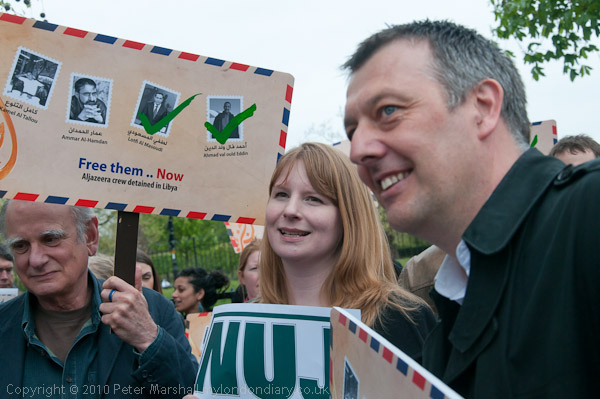 Among the banners at the protest was one calling for justice for the Shrewsbury pickets, jailed for their trade union activities in the 1972 Building Worker's National Strike. The prosecution is viewed by many as a clear example of the undue influence that large construction companies - particularly in this case the McAlpine family - have over both government and judiciary, and there are also questions about the involvement of MI5 in the political conspiracy against the pickets.