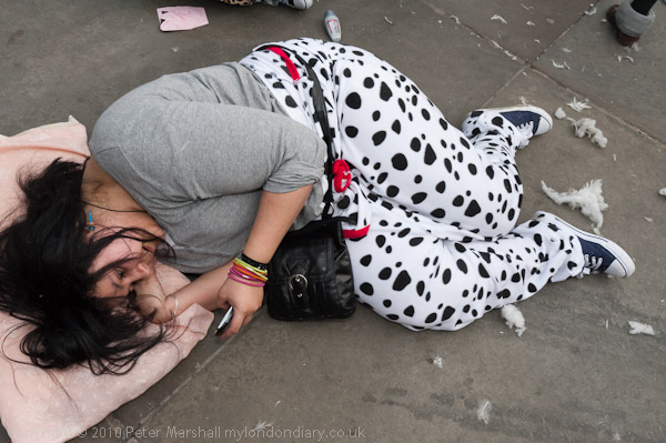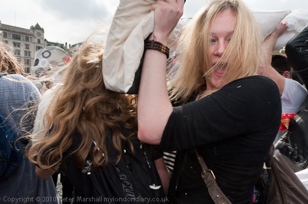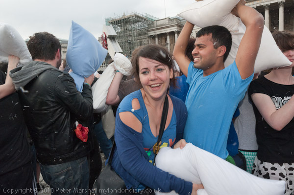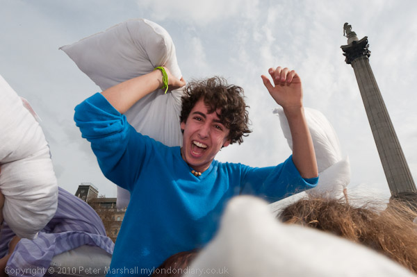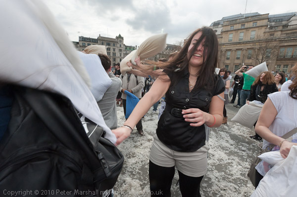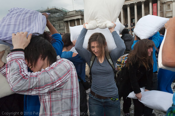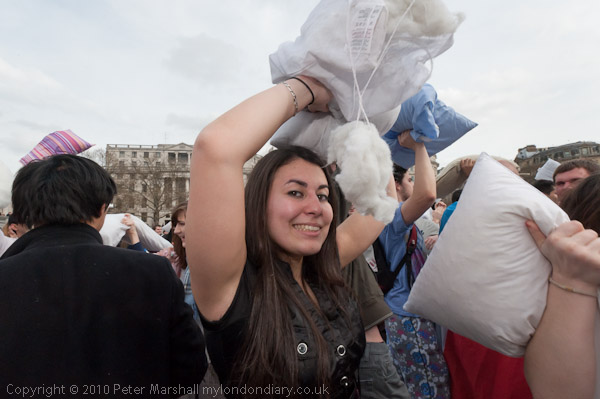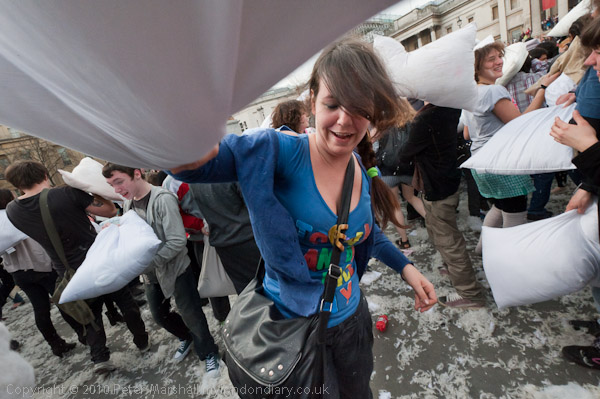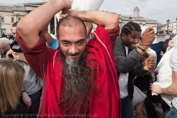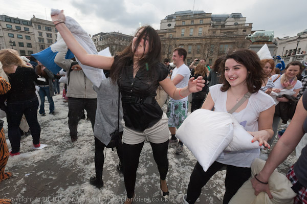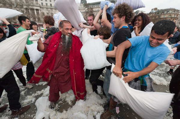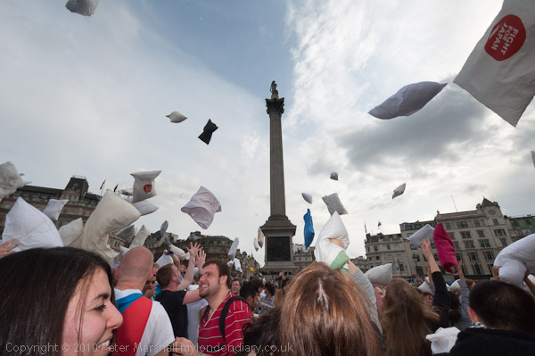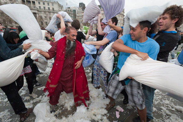 Feathers Fly in Trafalgar Square Pillow Fight