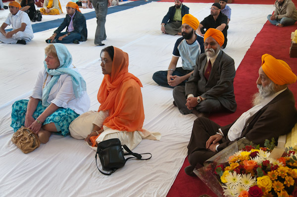 The Mayor waits in line to pay her respects to the Guru Granth Sahib