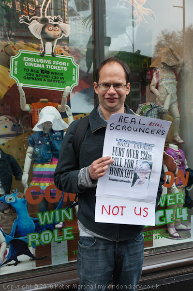 'Daily Mail and other Scum' and 'Real Royal Scroungers - Not Us' placards