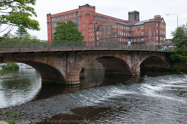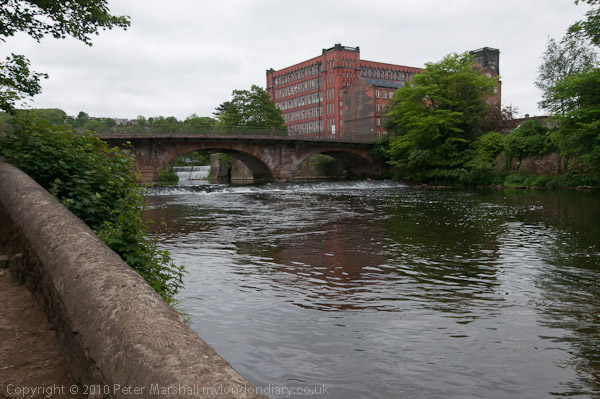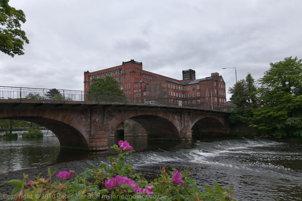 The older North Mill in front of the 1912 East Mill has a textile museum. A large area of the Derwent Valley is