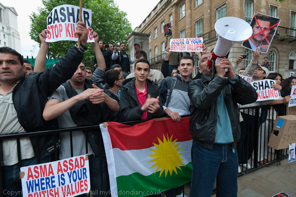 Bashar al-Assad is the President of the Syrian Arab Republic. Most of the placards call him Assad