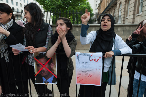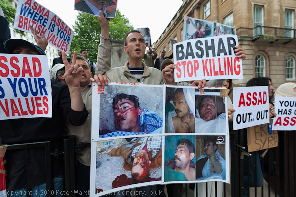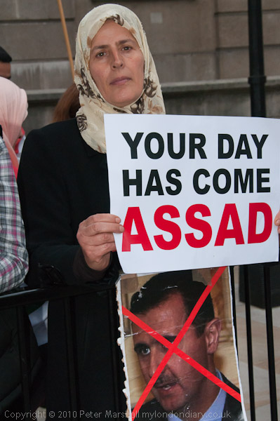The cartoon shows Syrian president Bashar al-Assad  with the devil''s horns and tail and a pitchfork
