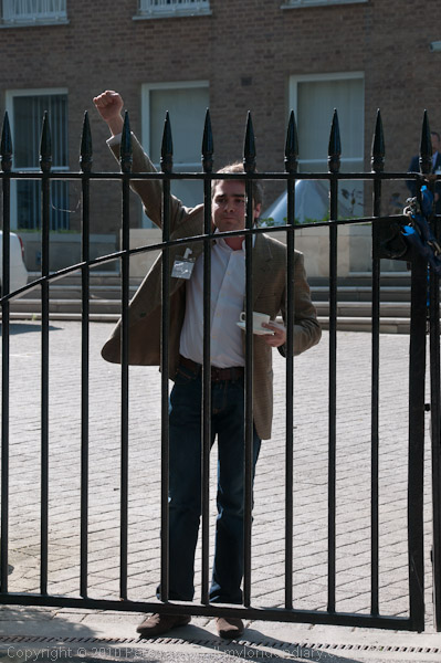 one or two of the people inside the London Business School came across and showed their support for the protest