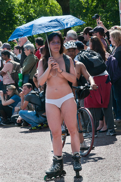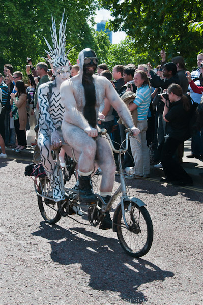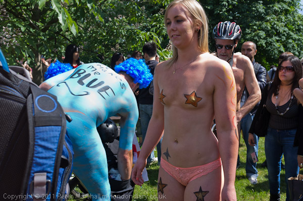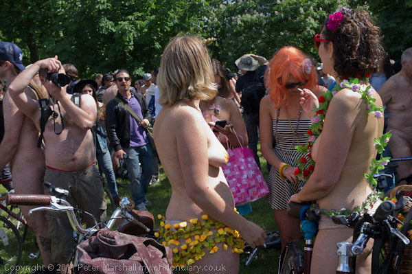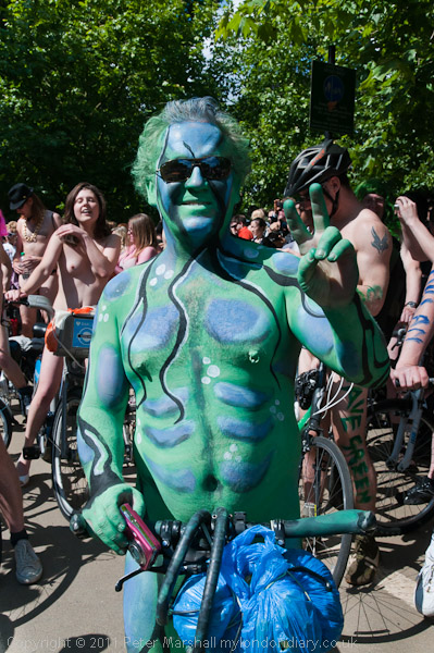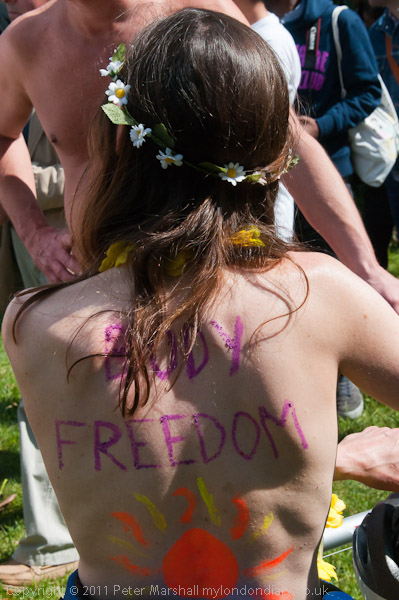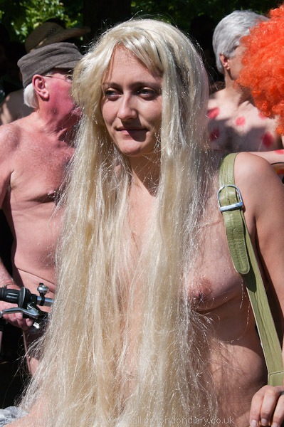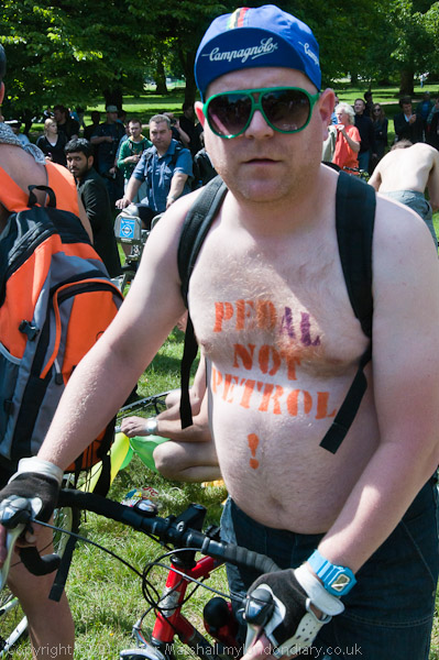 Relatively few of the riders had slogans on their bodies or bikes - such as 'Pedal Not Petrol!' and 'Body Freedom'