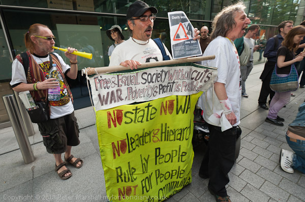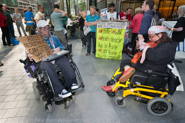 'Atod Recruitment. Gangsters Wanted. Apply Here' and 'Atos Don't Give A toss' banner outside the offices