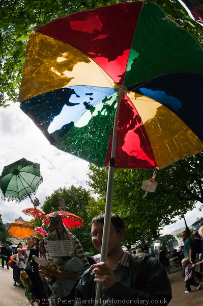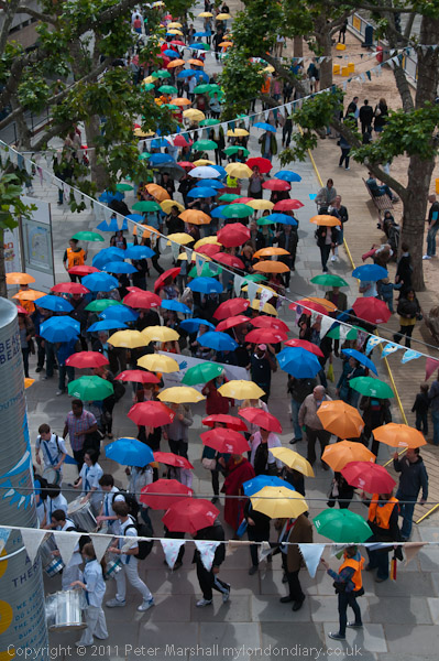 It should have been joined by the Amnesty workshop group that had been making these deocrated umbrellas