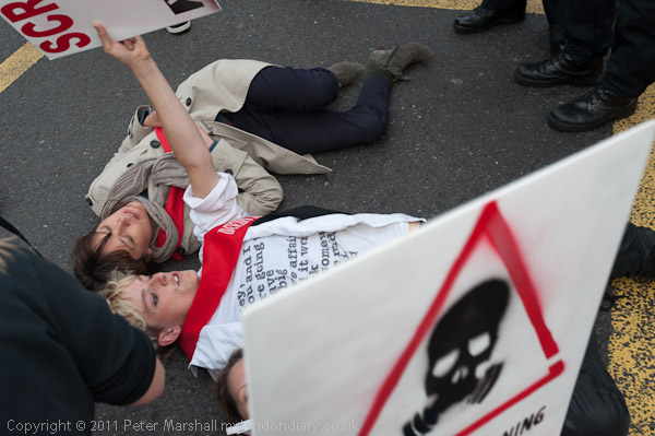 Police photograph the protest and warn Tamsin that she will be arrested if people do not leave the road