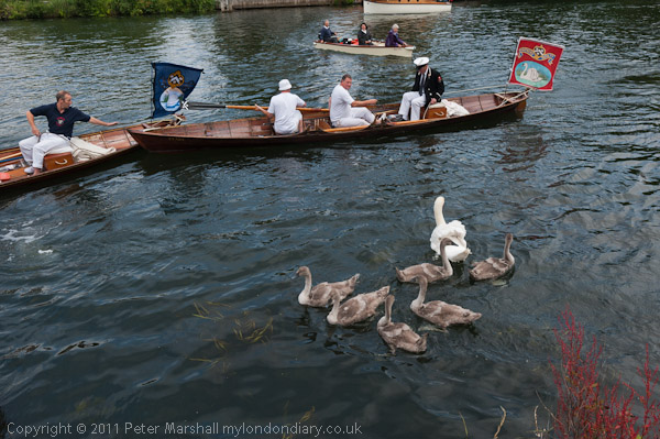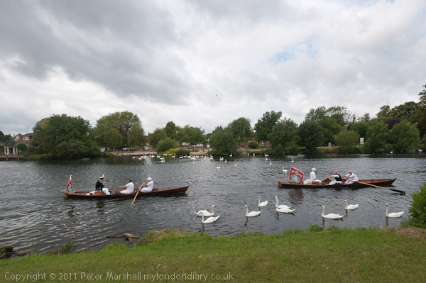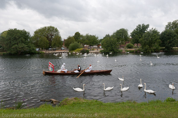 The Queen's Swan Warden and his colleagues in the 'Royal Swan' usually go ahead of the uppers and spot the swans