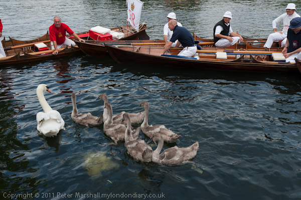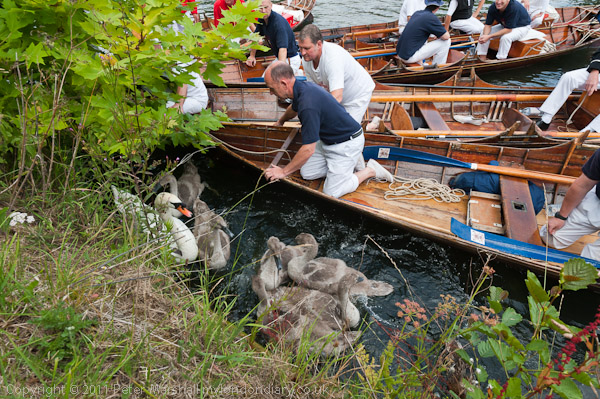closing the gaps between them, then bringing in the boats to close in on the swans
