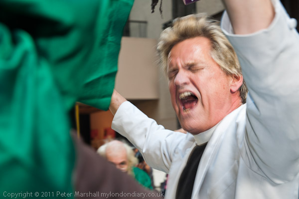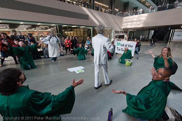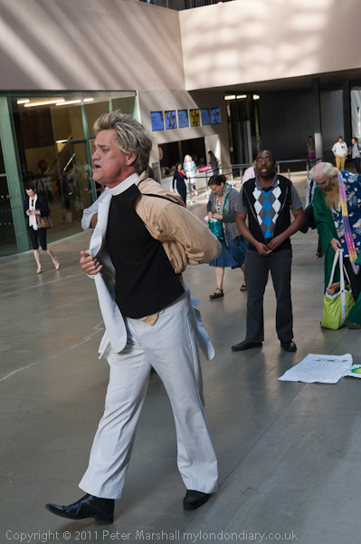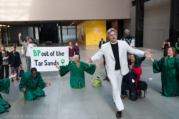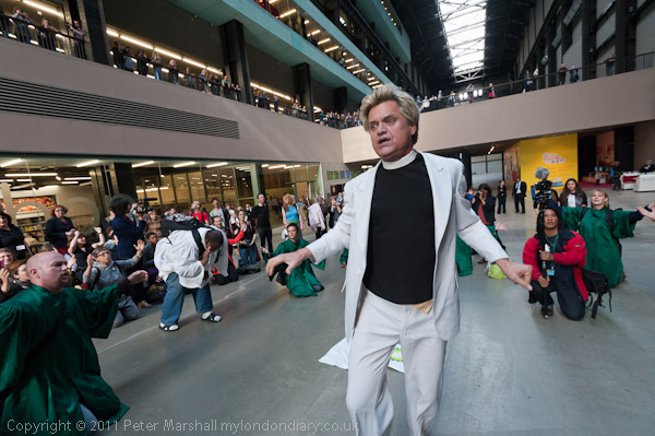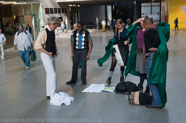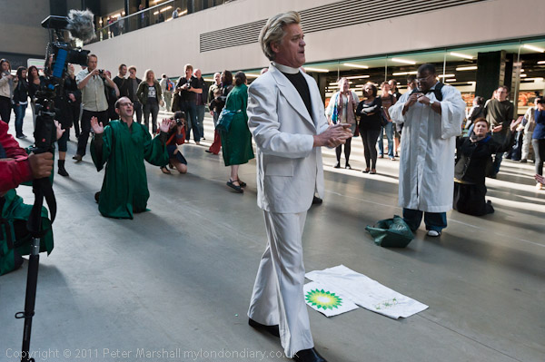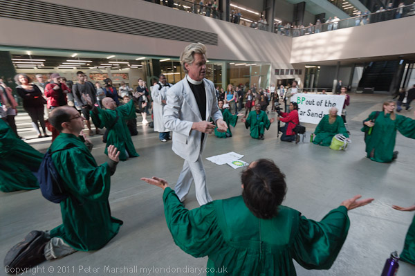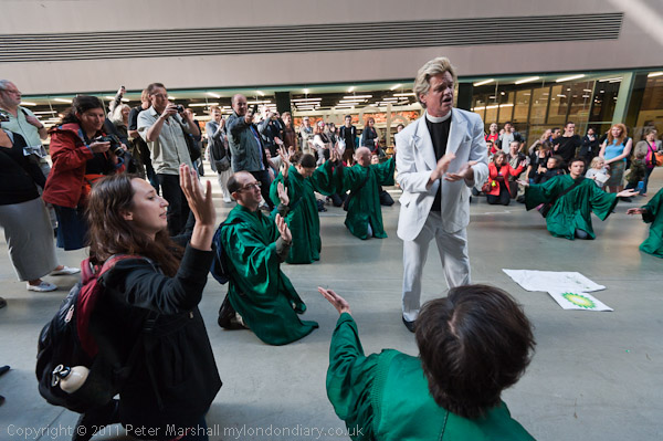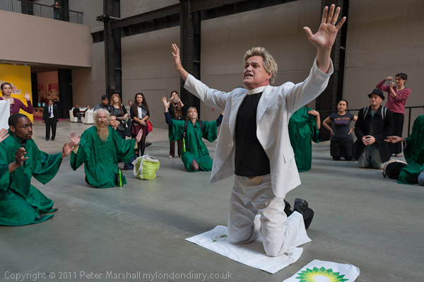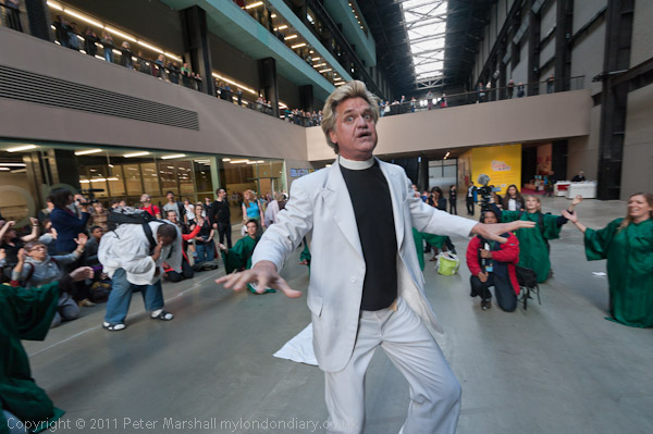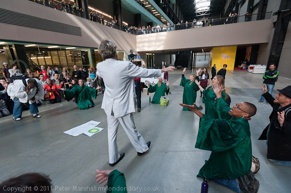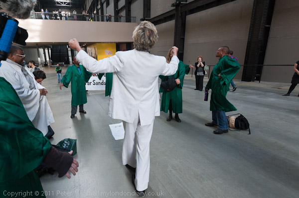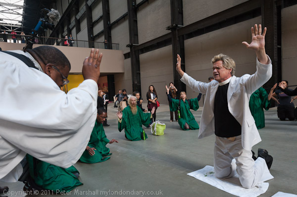 Rev Billy and his congregation moved to the centre of the Turbine Hall and began to change into their robes