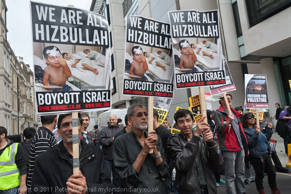 The Al Qud's Day march forms up with placards 'We are all Hizbullah - Boycott Israel'