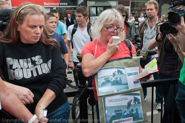 Some of the posters had pictures showing the problems of earlier evictions carried out by Constant & Co, who ignored safety laws