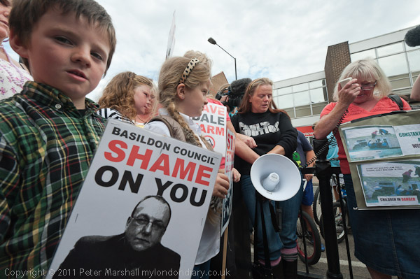 The march on its way to the centre of Wickford. The banner has the price tag of £18m which Basildon has wasted
