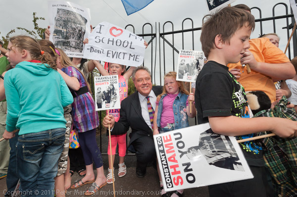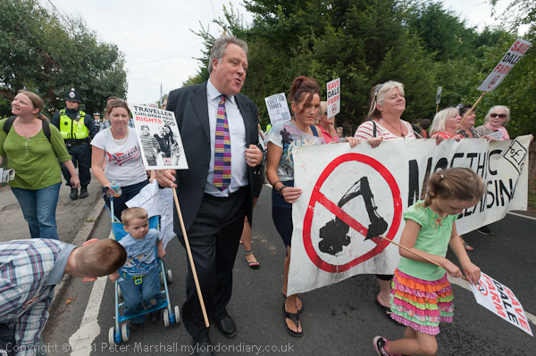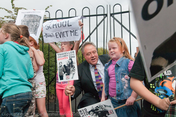 Euro MP Richard Howitt talking to Dale Farm residents on the march