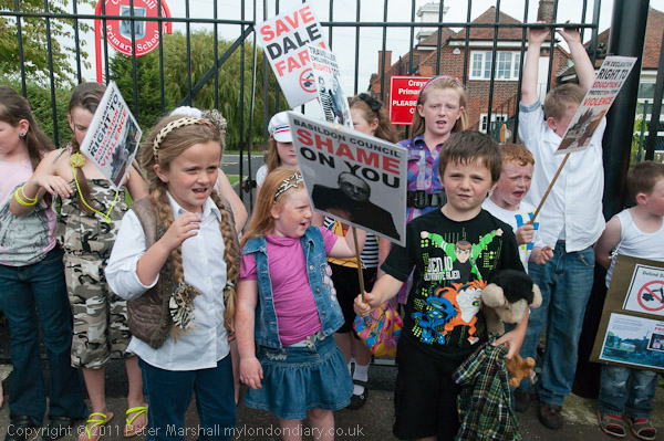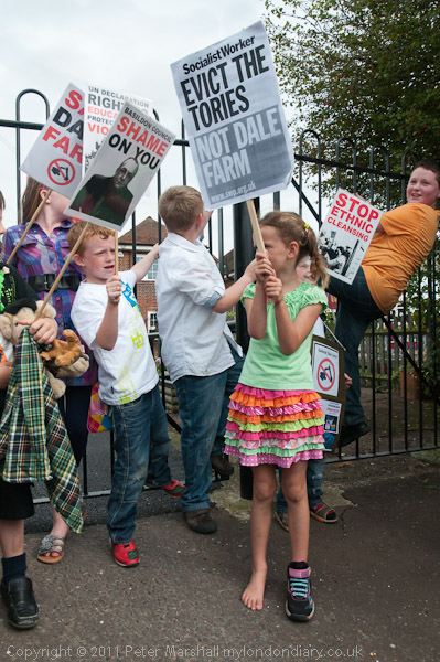 Dale Farm children outside the gates of Cray's Hill Primary School, some still without their shoes