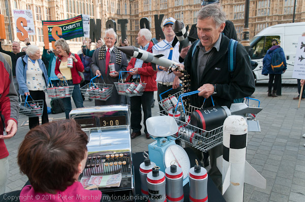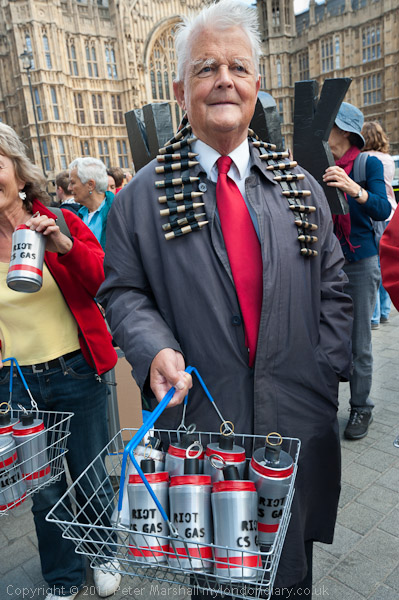 Bruce Kent gets in a good supply of bullets and CS gas for riot control