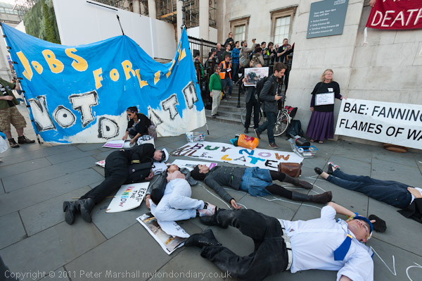 Police argued with the protesters to get them down from the steps and those on the terrace staged a die-in