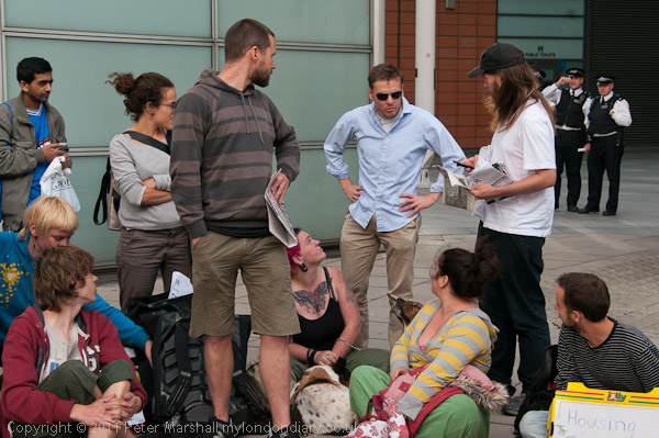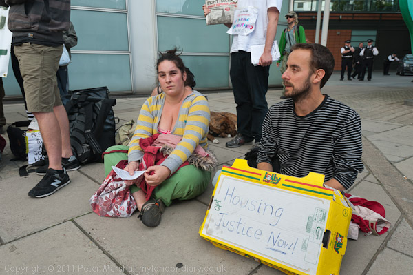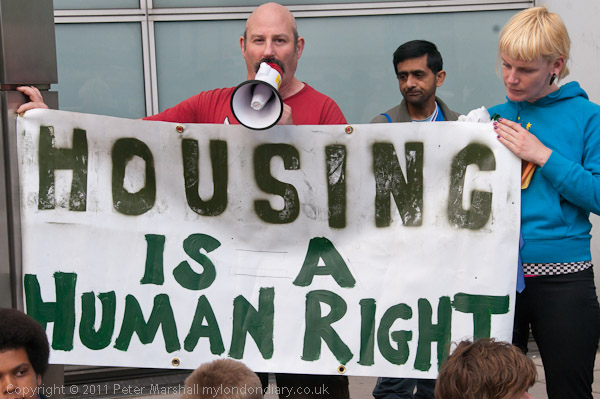 ![]() 'Housing Justice NOW!' ![]() ![]() ![]() ![]() ![]() One angry man passing by stops to argue with the protesters ![]() |