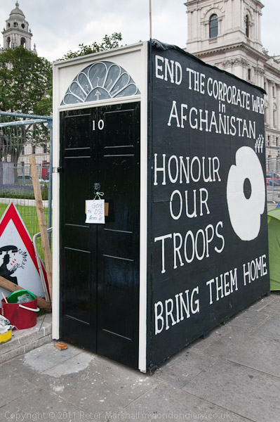 ![]() The protesters start to pack up after around an hour and we go home ![]() I walk past Westminster Cathedral ![]() and offices to Parliament Square, where I take a couple of pictures and talk to Barbara Tucker, recently out of prison ![]() ![]() There is no one in at the Peace Strike as I pass |