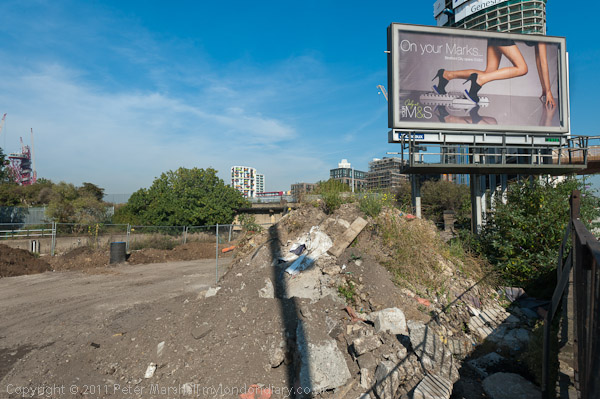 The start of the new suspended walkway under the Bow Flyover at the grandly named Global Approach