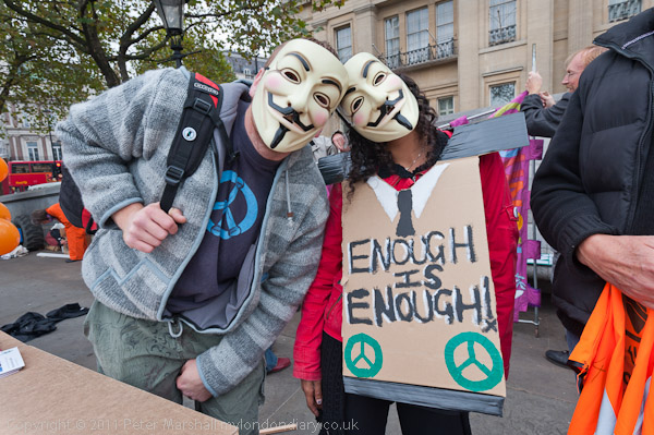A couple of 'Anonymous' supporters with the message 'Enough is Enough'