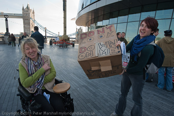 Clare's placard said 'Disability IS work - We are entitled to Benefits & Decent Wages'